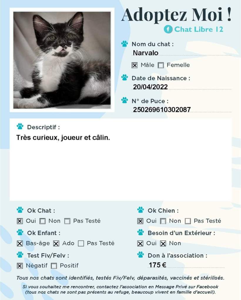 J’adhère à l’association Chat Libre 12