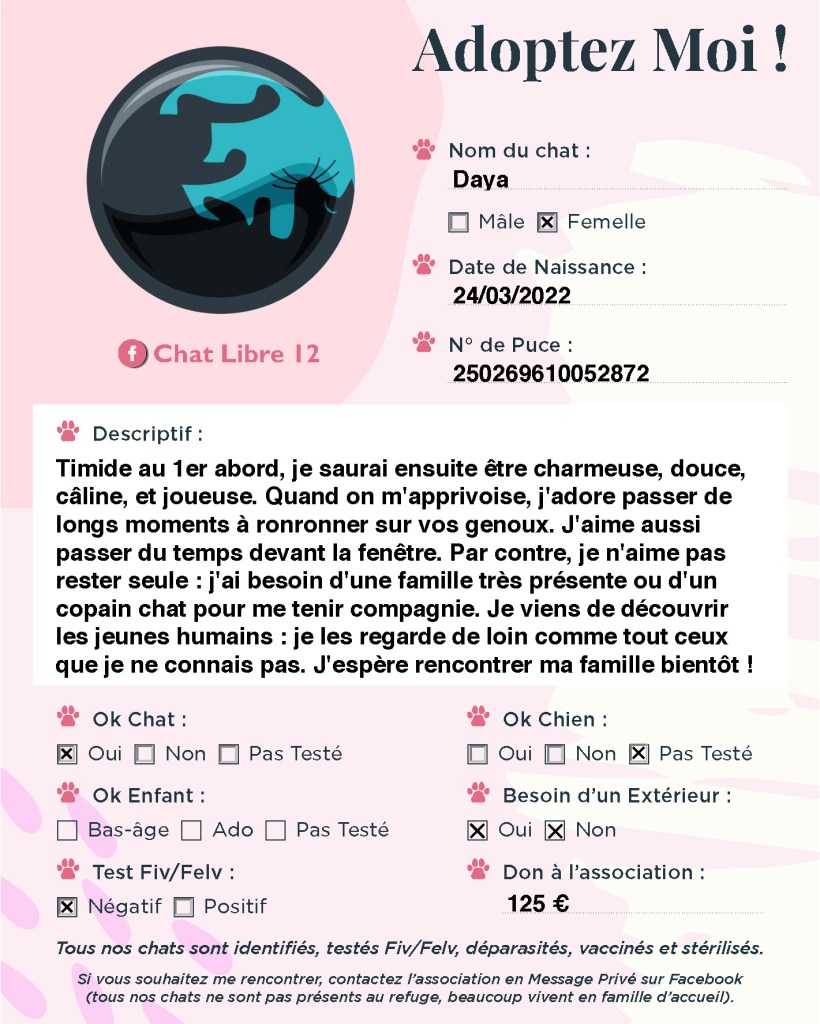 J’adhère à l’association Chat Libre 12
