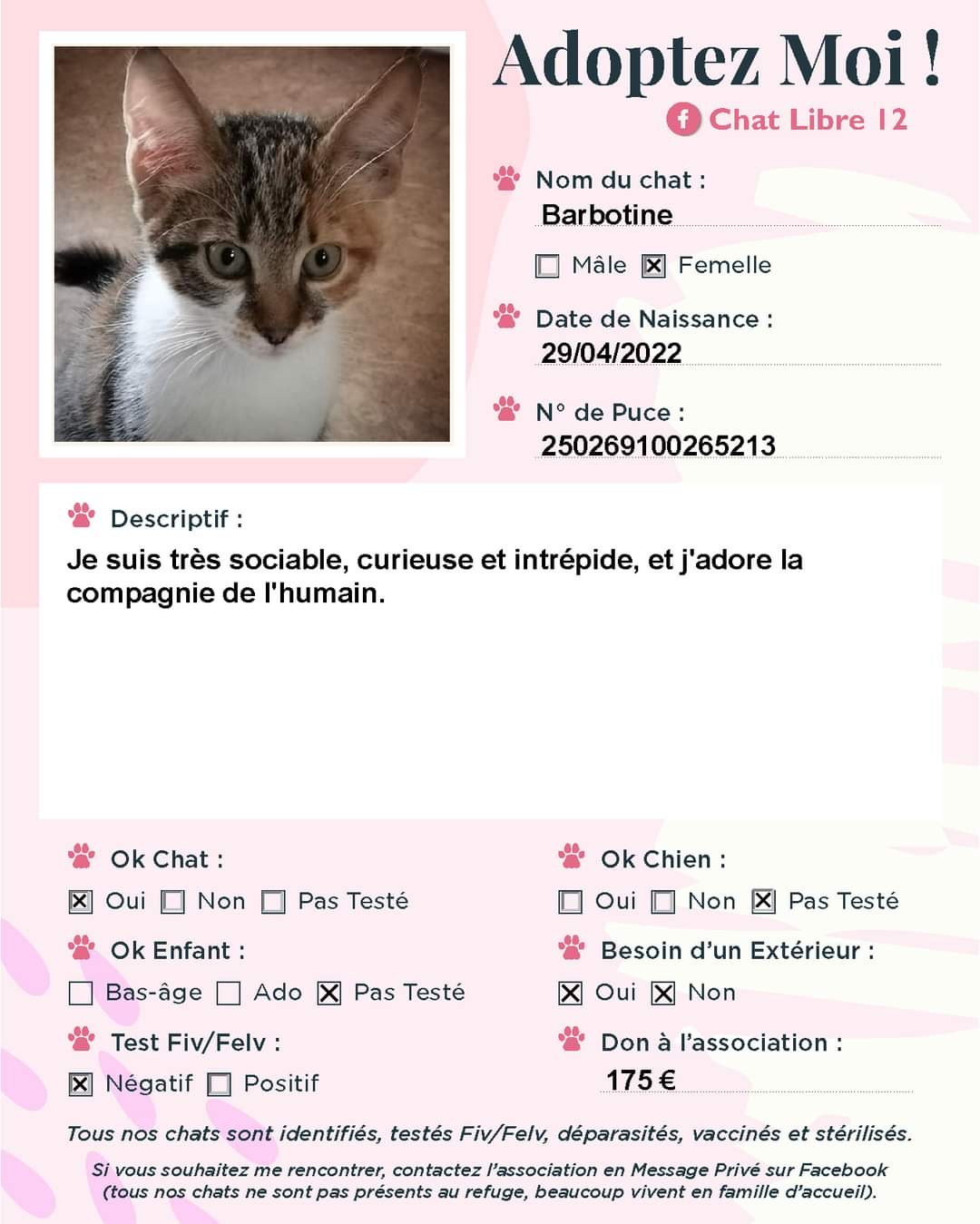J’adhère à l’association Chat Libre 12