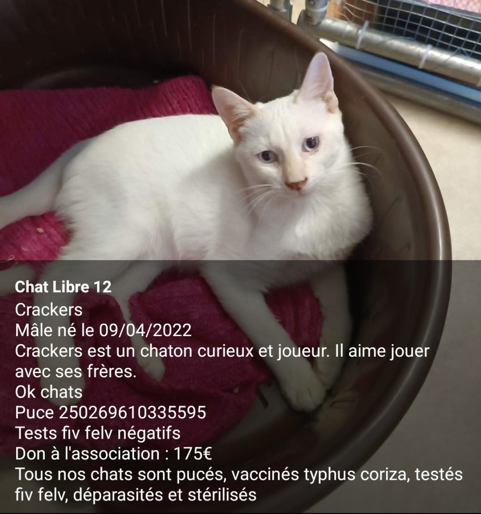 Crackers (adopté) Publié parchatlibre121 août 20225 mars 2023Publié dansNos adoptés Don ramené à 125 €