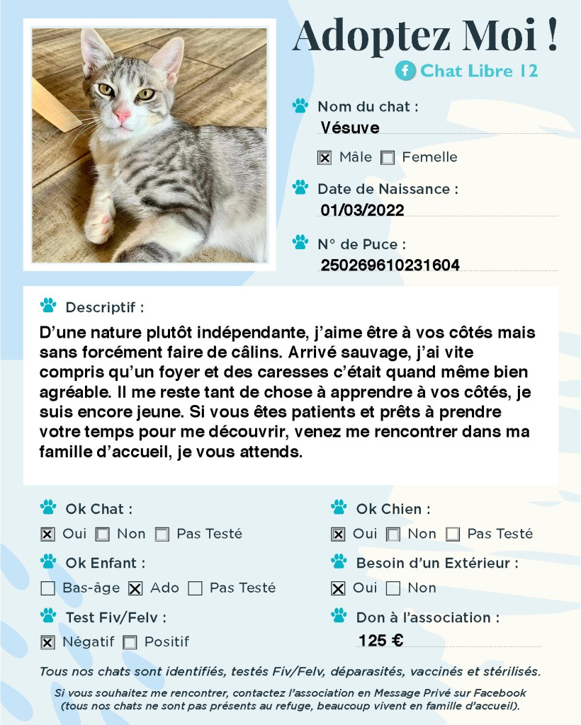 Vésuve (adopté) Publié parchatlibre1221 août 20226 novembre 2022Publié dansNos adoptés La participation aux frais pour l’adoption s’élève à 125€.