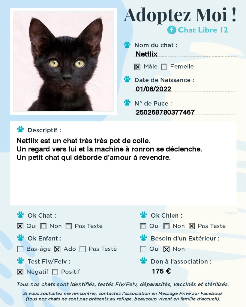 J’adhère à l’association Chat Libre 12