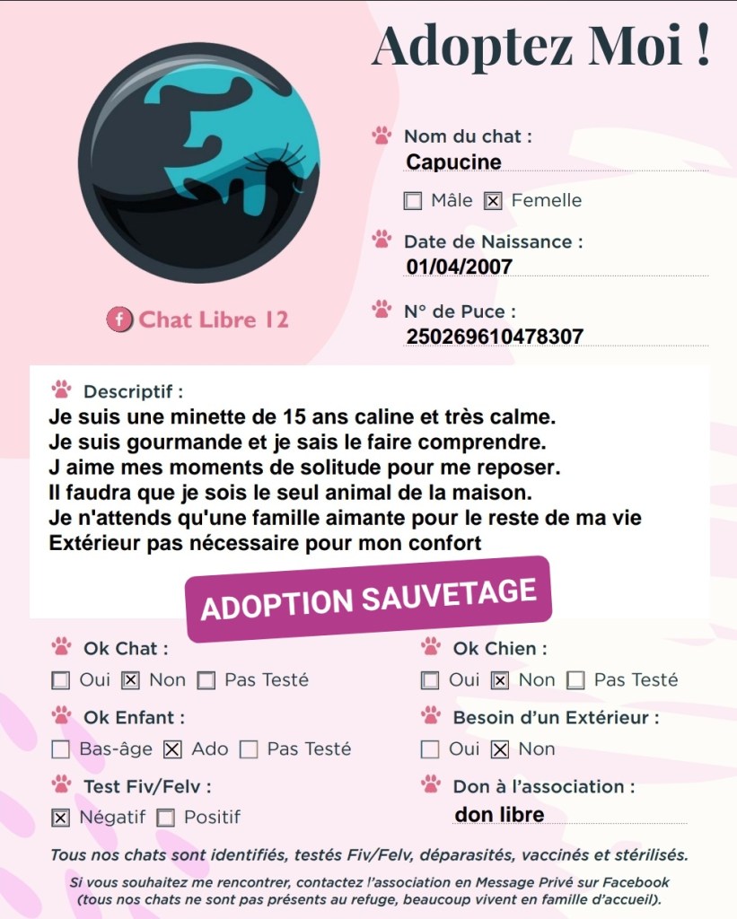J’adhère à l’association Chat Libre 12