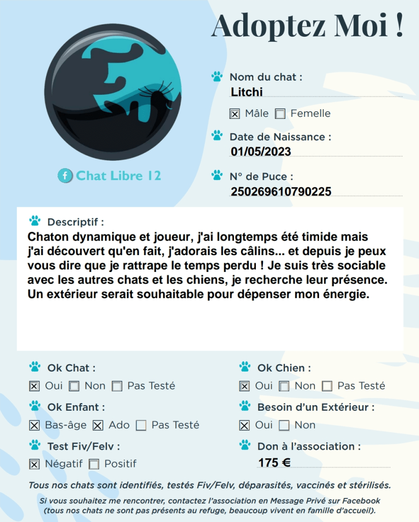 J’adhère à l’association Chat Libre 12