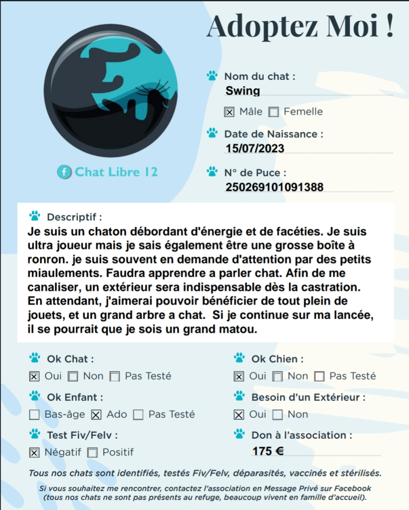 J’adhère à l’association Chat Libre 12