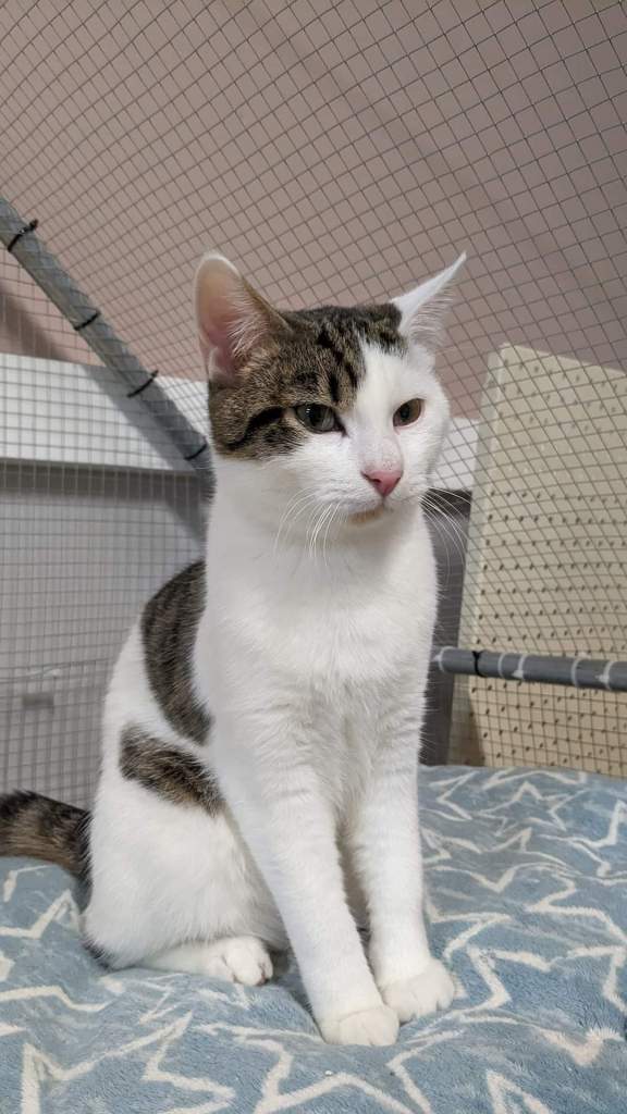 Ses oreilles bien blanches seront fragiles au soleil, une vie en intérieur serait préférable pour lui. La compagnie d’autres chats lui convient.