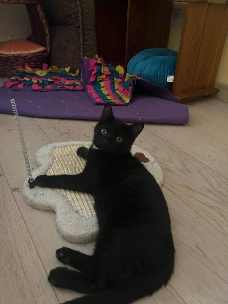 Derrière mon beau pelage noir brillant je sais être douce et affectueuse. Curieuse et vive, j’adore jouer dans des coins cachés, comme une petite panthère en chasse, avant de venir me frotter contre vous, ronronnant doucement du plaisir de votre présence et de votre attention.