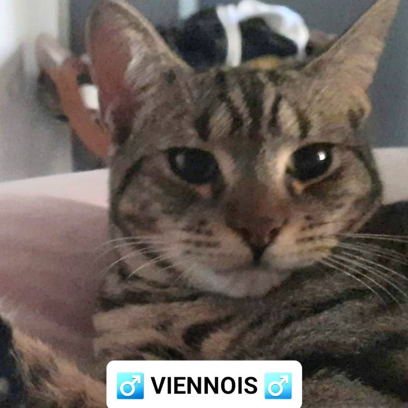 Je suis Viennois : un beau chaton au grand cœur. Je viendrai vous faire de gros câlins et des ronrons de tracteur sur vos genoux ou à côté de vous quand ma confiance sera installée.