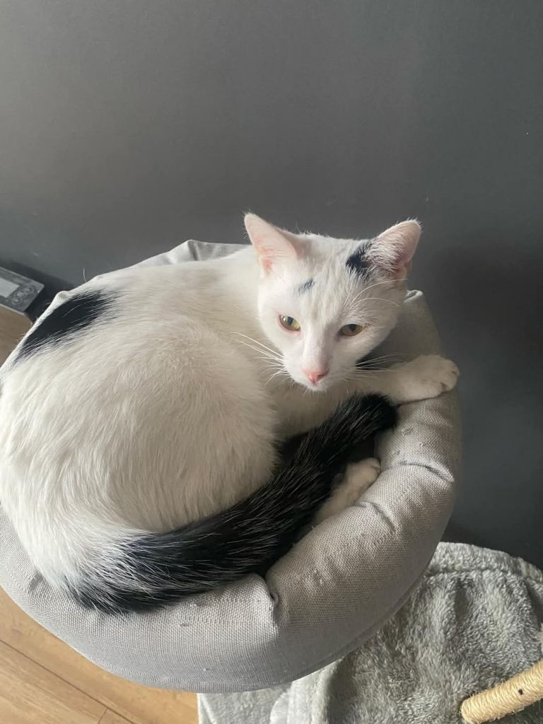 Il a néanmoins besoin d’un petit temps d’adaptation pour vous accorder sa confiance. Il aime aussi ses moments seul et il sait très bien réclamer les câlins. Attention de ne pas faire de mouvement trop brusque car il est encore sur ses gardes malgré tout .C’est un chouette compagnon et il a hâte de trouver la famille qui saura prendre bien soin de lui 😸.