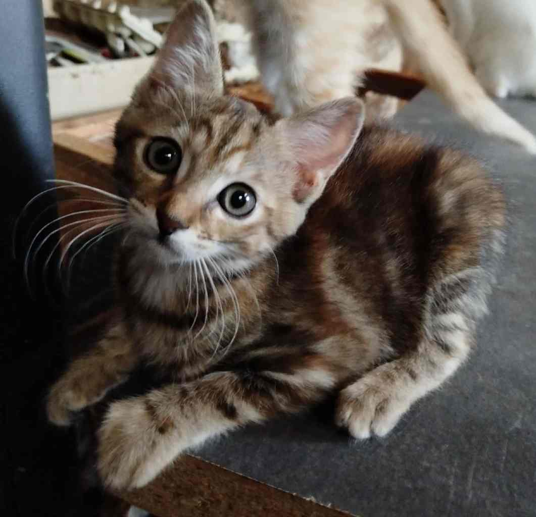 Altesse est une petite minette joueuse et très câline. Elle adore se poser sur vos genoux pour faire sa sieste. Un petit bout plein de vie qui mettra de l’animation dans votre quotidien.