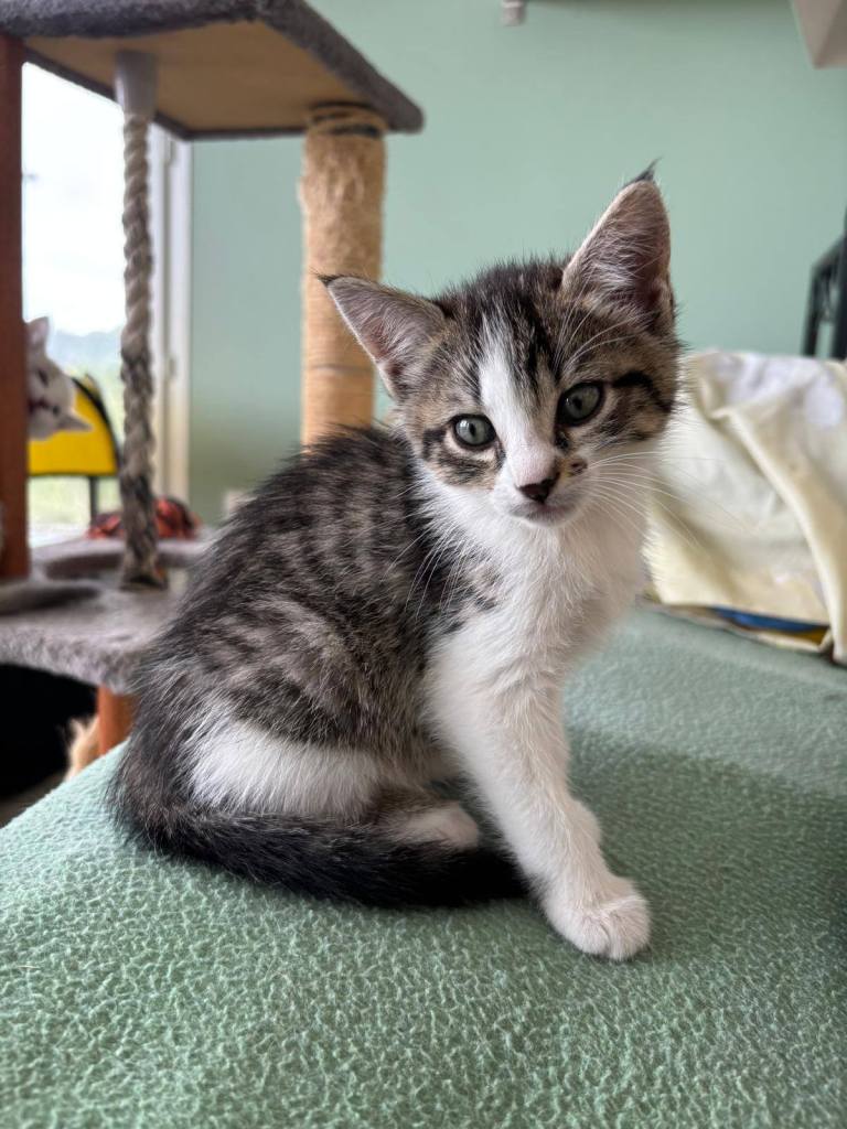Sibel est une super petite chatonne, maline, comprend très vite les bruits de la maison en particulier celui des petites gamelles avec le pâté .Elle viendra volontiers sur vos genoux réclamer quelques caresses, ça reste encore furtif, c’est encore un bébé.