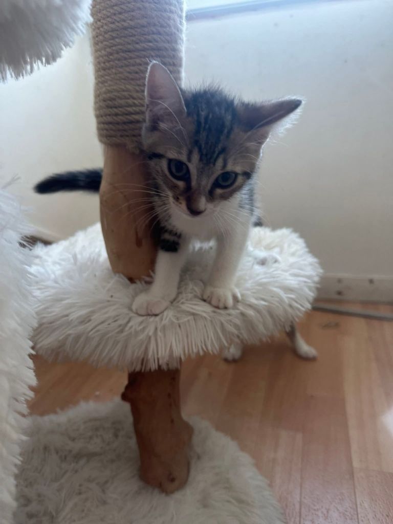 Une fois mis en confiance, Shazam aime se faire câliner. C’est un chaton plutôt calme et qui apprécie les séances de jeu.