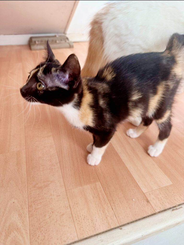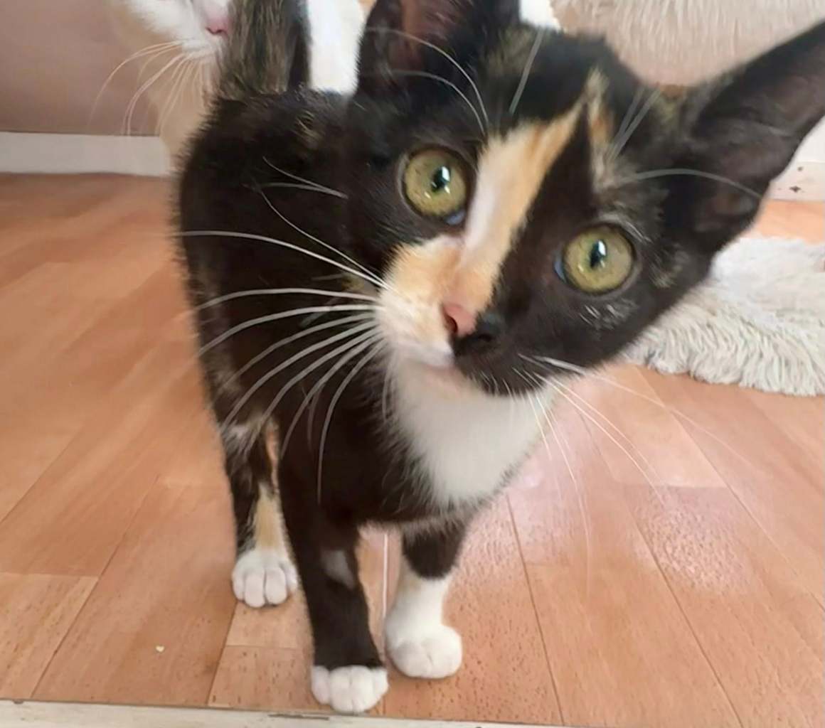 Moon est une petite chatte au regard doux et à l’âme câline. Elle aime l’humain plus que tout et se met à ronronner au moindre geste d’attention. Curieuse, joueuse et très gourmande, elle a besoin d’interaction et de tendresse. Un extérieur sécurisé serait un vrai plus pour son bien-être, et elle peut tout à fait s’adapter à un foyer avec des chiens. Une compagne idéale pour une vie pleine de douceur et d’aventures !