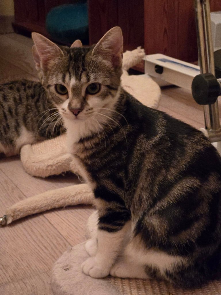Derrière ce look unique se cache un tempérament doux et équilibré. Utopie est une petite minette calme qui aime ses moments de tranquillité, mais elle reste une chatonne espiègle et dynamique, toujours prête pour une session de jeu. Elle est encore un peu timide et découvre les joies des câlins, mais elle montre déjà un grand potentiel pour devenir une grande pot de colle !