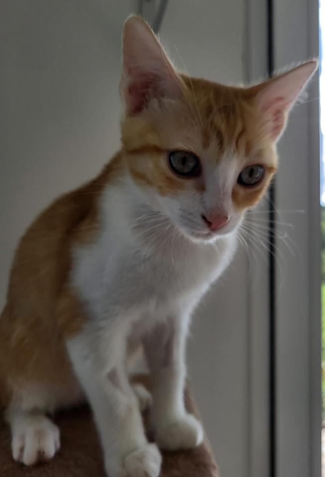 FUTON, est un petit chat très agréable, vient chercher les carresses, en pleine forme et joue bien avec son frère et sa soeur.