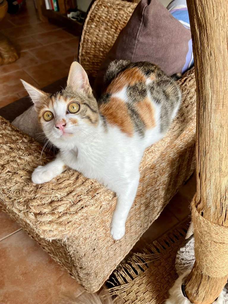 Minette dynamique, curieuse et très joueuse. Elle est plutôt indépendante mais se laisse prendre dans les bras. Elle est facile à vivre et très attachante.