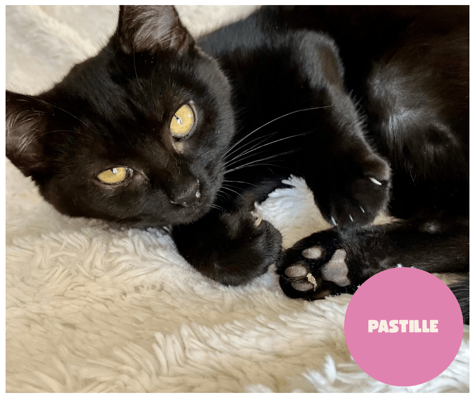 Pastille est une minette tout en douceur qui apprécie les câlins et aura besoin de présence . Elle est aussi joueuse et curieuse et sera votre ombre tout au long de la journée.