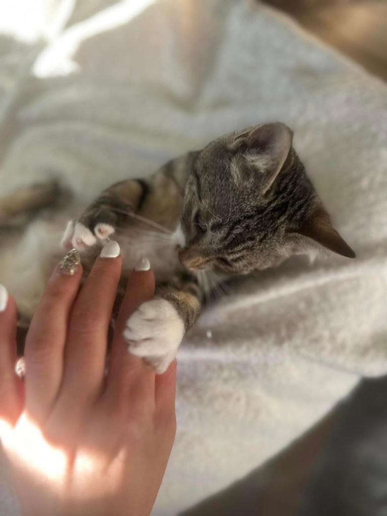 Curieux, joueur et débordant d’affection, il passe facilement du jeu aux grosses séances de ronrons.