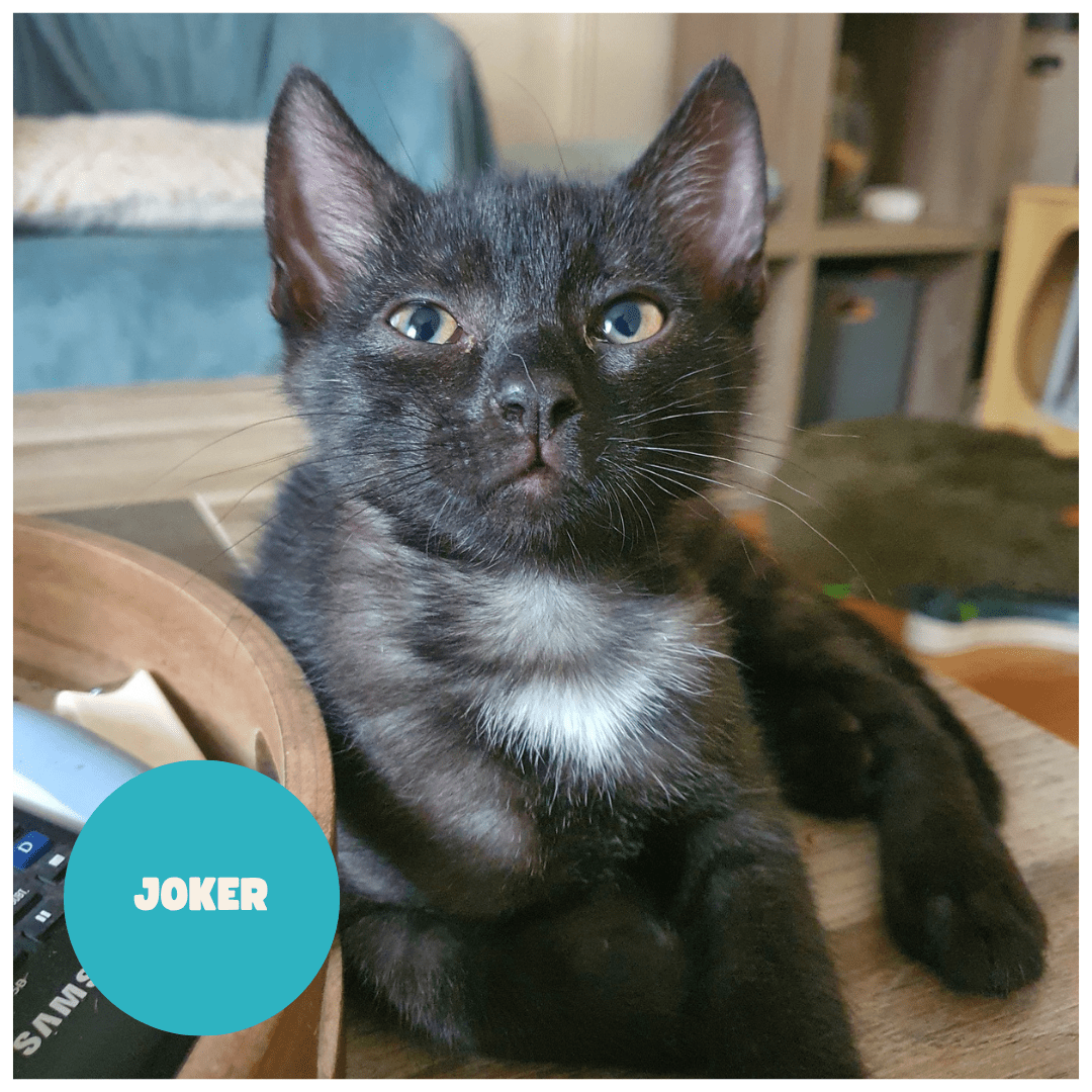 JOKER Male né le 13/04/2025 Puce n : 250 269 591 486 097 Chat Chien Mais Ado Enfant bas âge Exterieur nécessaire : oui Tests fiv/felv négatifs J’aime faire des câlins avec aussi une part d’indépendance. Je suis déjà un grand chasseur, de mouches pour l’instant , mais un jour du plus gros serait top.LireLire la suite « JOKER a trouvé sa famille ! »