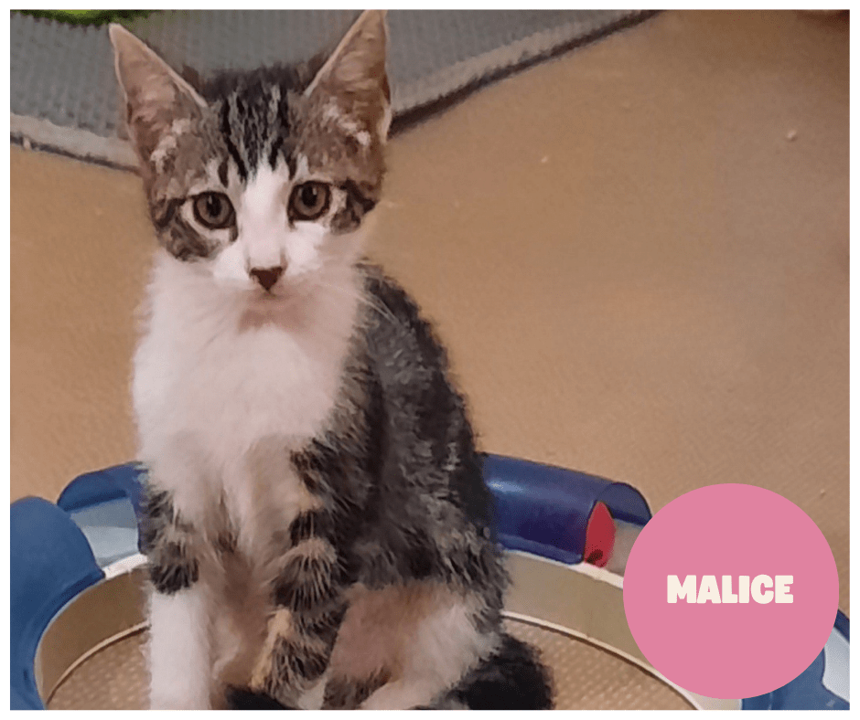 MALICE FemelleNée le : 01/05/2025Puce n : 250269592072546 Chat Chien pas testé Ado Enfant bas âge Pas testé Exterieur nécessaire : Non Tests fiv/felv négatifs Je vous présente Malice, un chaton plein de vie et timide, qui adore jouer et faire des câlins quand sa confiance sera acquise auprès de mon humain.Je suis pas contreLireLire la suite « MALICE a trouvé sa famille ! »