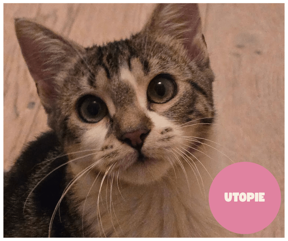 UTOPIE Femelle Née le : 22/04/2025 Puce n : 250269591454282 Chat Chien Ado pas testé Enfant bas âge pas testé Exterieur nécessaire : surement Tests fiv/felv négatifs Utopie est une adorable petite chatonne qui cherche sa famille pour la vie. Avec son magnifique pelage marbré et son petit rond sur le flanc, qui rappelle leLireLire la suite « UTOPIE a trouvé sa famille ! »