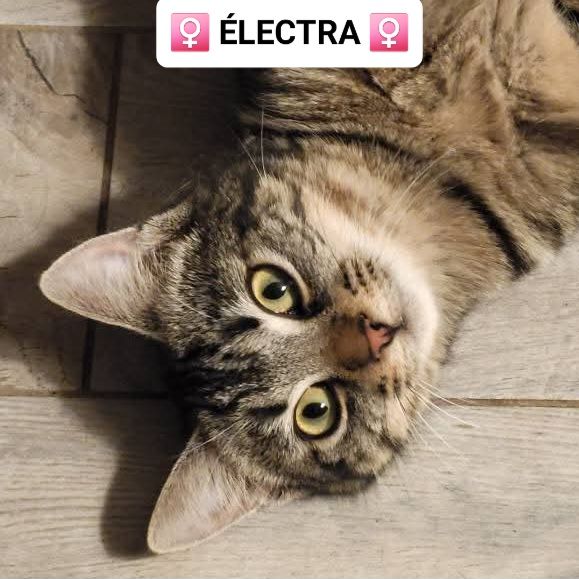 ♀️ Femellenée le 01/05/2024Puce n : 250 269 591 394 526 😺 Chat ⛔⛔⛔🐶 Chien 🆗👧🧒 Ado 🆗👶 Enfant bas âge , pas testé🌳 Exterieur nécessaire : oui🏥 Tests fiv/felv négatifs Electra en pleine forme, demandeuse de câlins et d’attention et gourmande ! Le bruit de la boîte de friandises est magique pour elle.Se familiariseLireLire la suite « ELECTRA a trouvé sa famille »