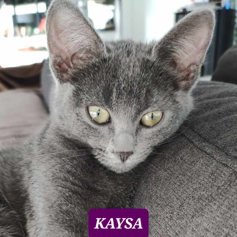 ♀️ Femellenée le 01/08/23Puce n : 250 269 101 091 639 Chat ok Chien pas testé戮 Enfant pas testé Exterieur nécessaire : non Tests fiv/felv négatifs Petite minette très affectueuse, dynamique et curieuse.Je viens avec plaisir sur les genoux ou me blottir dans le cou pour partager les câlins et ronronner sans retenue.J’adore aussiLireLire la suite « Kaysa (adoptée) »