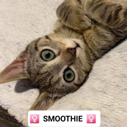 ♀️ Femellené le 01/11/2023Puce n : 250 269 101 076 971😺 Chat OK🐶 PAS TEST 👧🧒 Ado OK👶 PAS TEST. Elle est trop petite, ces griffes sont affûtées ! 🌳 Exterieur nécessaire : non🆗 Tests fiv/felv négatifsJe suis très câline et je ronronne beaucoup. J‘aime les endroits très douillets pour dormir. j’adore les énormes plaidsLireLire la suite « Smoothie (adoptée) »